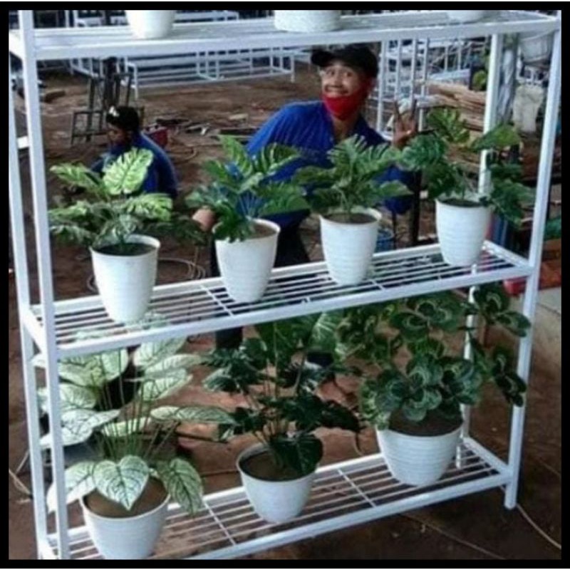 Rak bunga besi hollow susun 3/rak bunga besi minimalis/tanaman hias aglonema anggrek 15 dudukan stan.